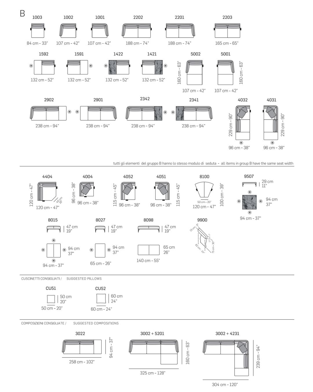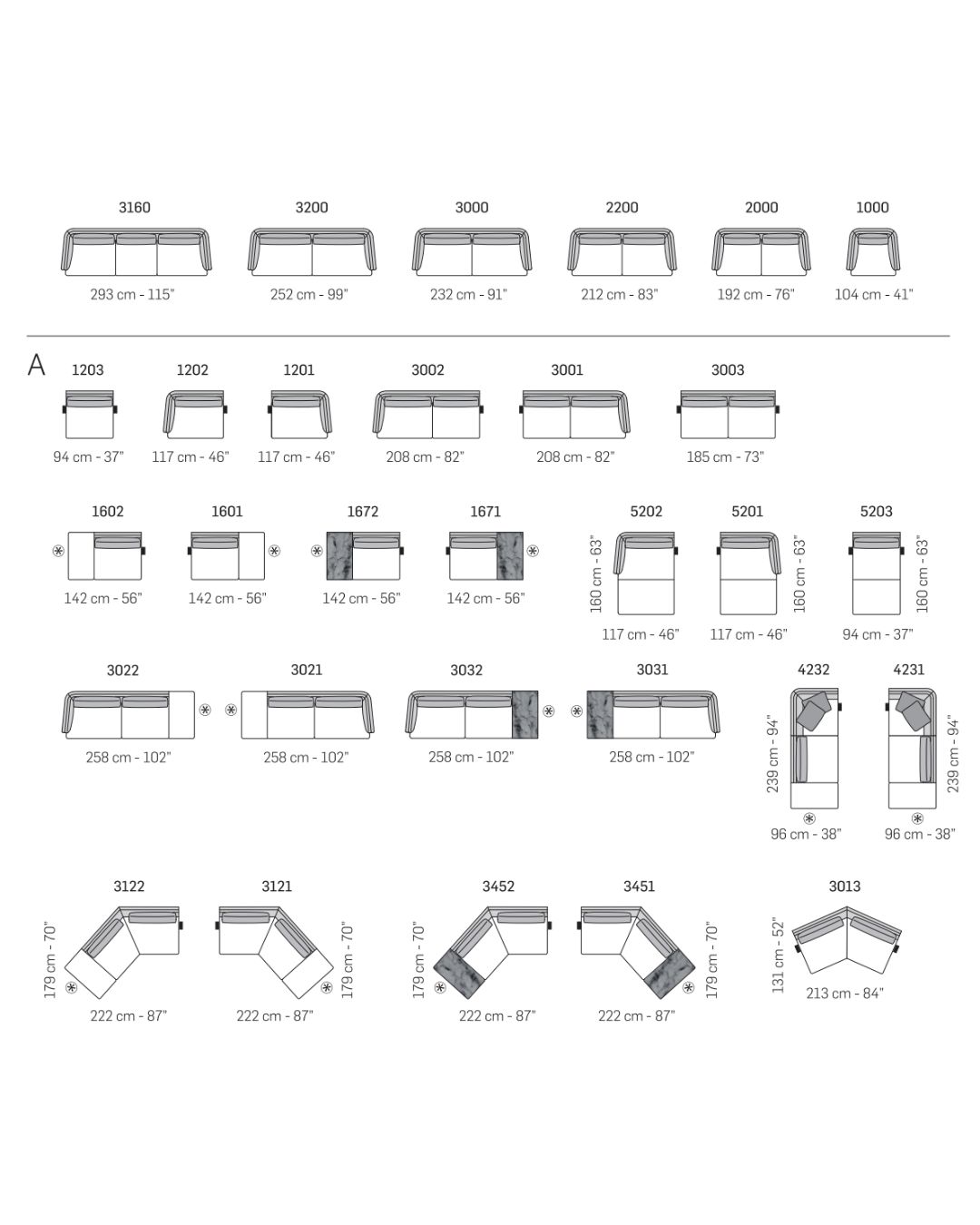 • Kiti dydžiai: ši sofa yra modulinė – galima užsisakyti ir kitus dydžius