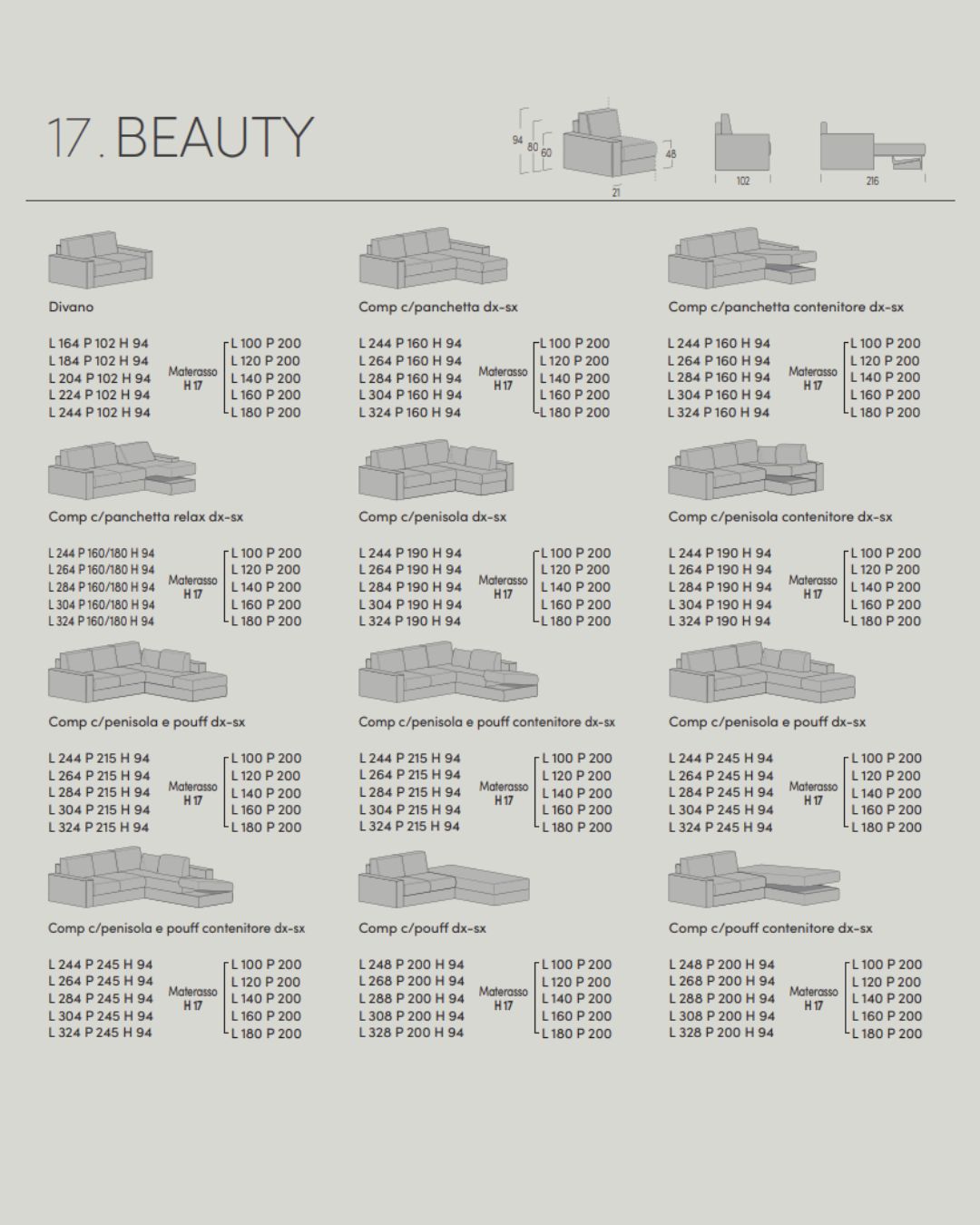 BEAUTY – elegantišo dizaino svetainės sofa su integruotu miegamu mechanizmu. Nugaros pagalvės, užpildytos poliesterio pluoštu, suteikia minkštumo bei ergonomišką atramą. Platus audinių pasirinkimas ir lanksčios komponavimo galimybės suteikia laisvę kurti sprendimus, išskirtinai jūsų namams.