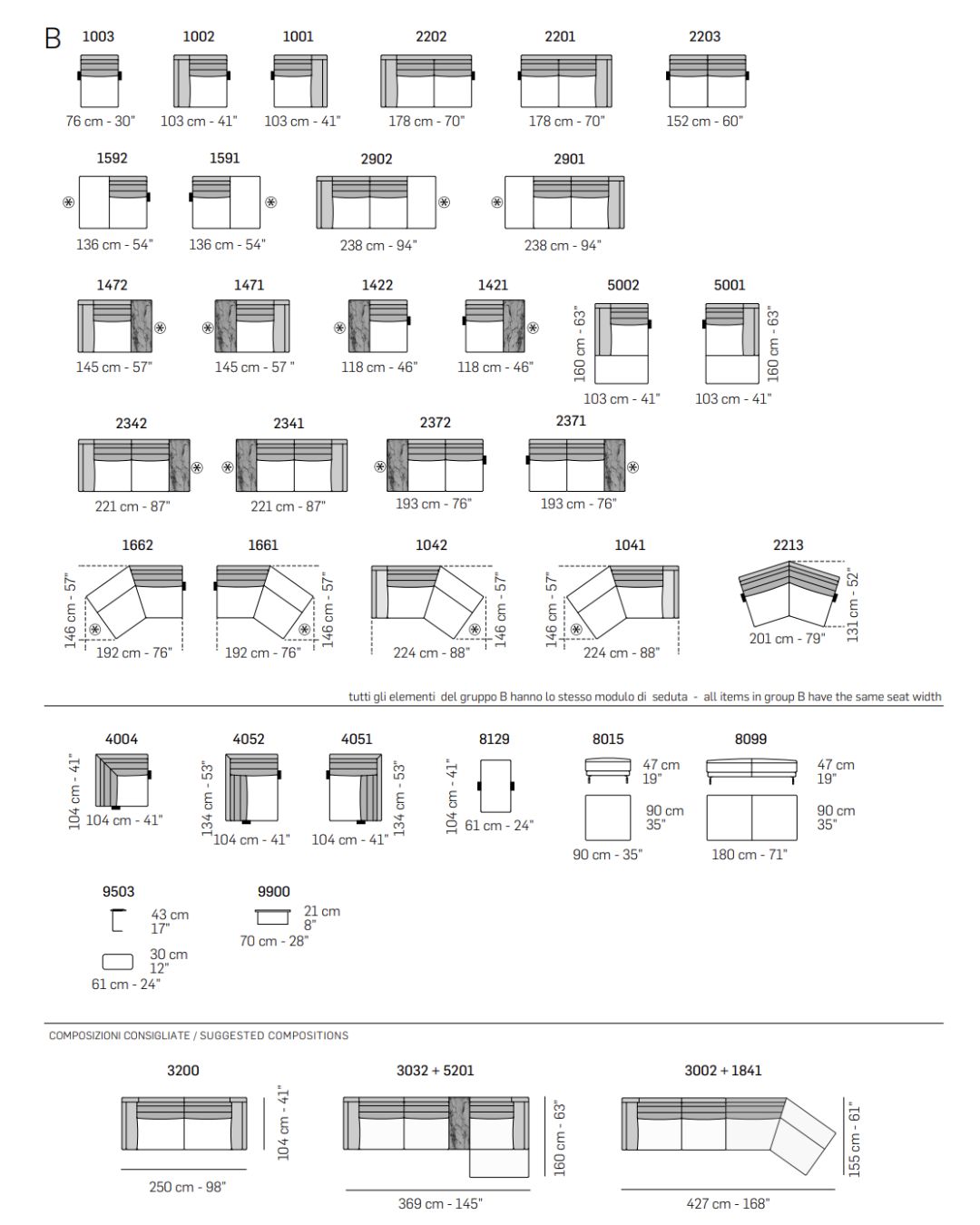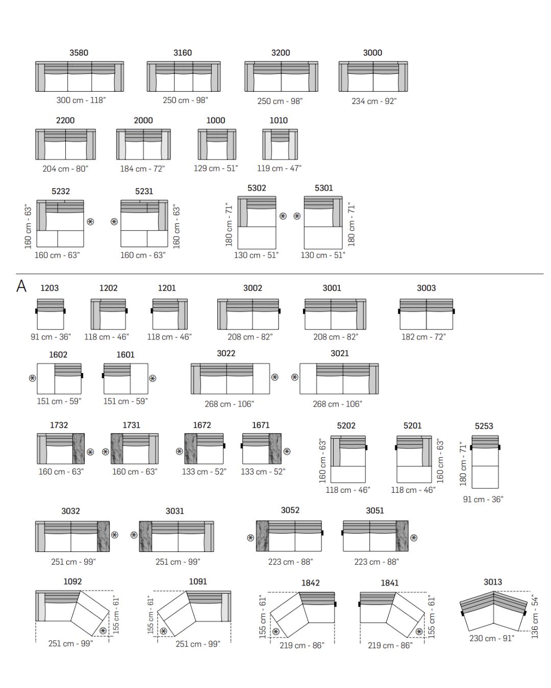 • Kiti dydžiai: ši sofa yra modulinė – galima užsisakyti ir kitus dydžius