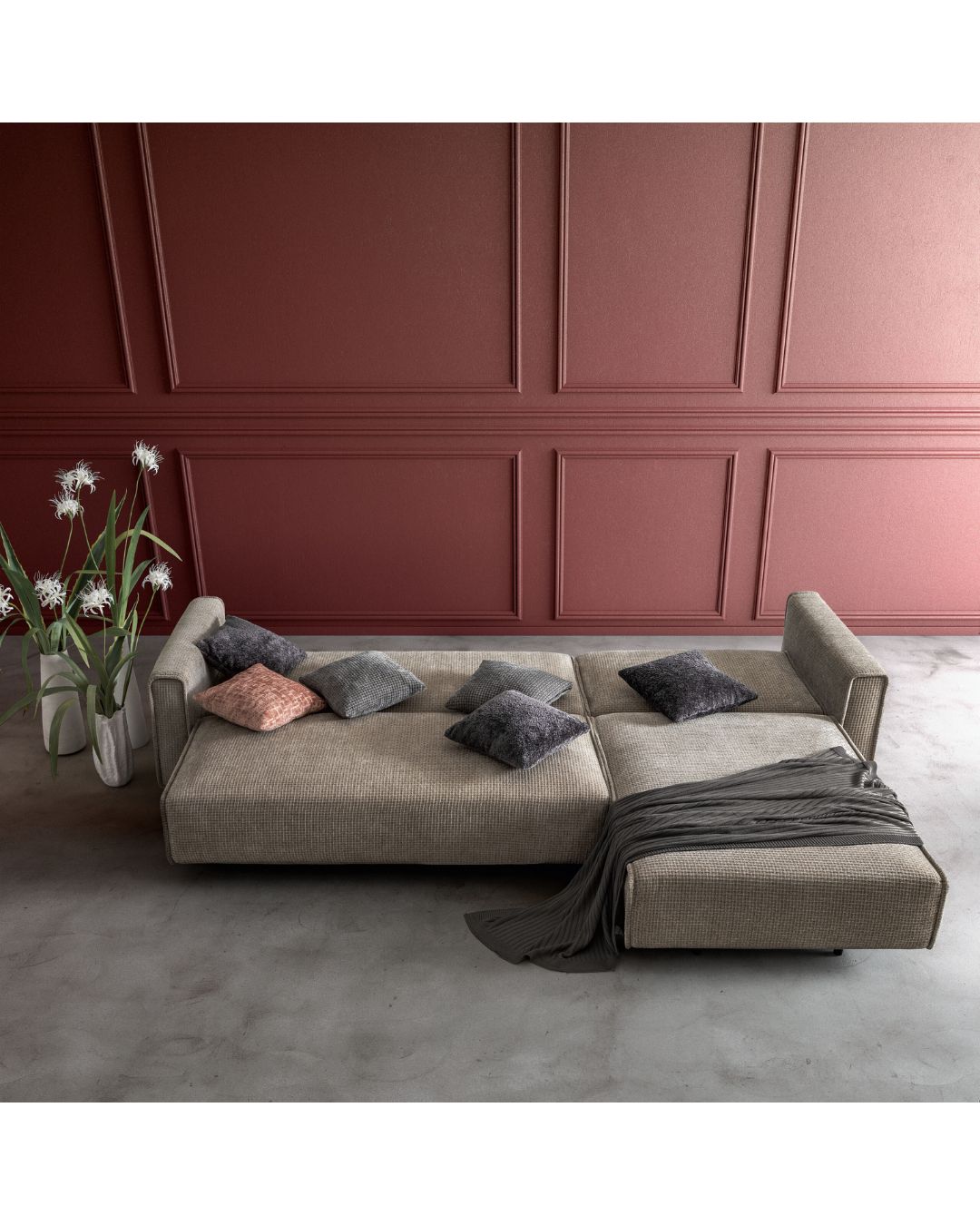 DANCE – elegantišo dizaino svetainės sofa su integruotu miegamu mechanizmu. Nugaros pagalvės, užpildytos poliesterio pluoštu, suteikia minkštumo bei ergonomišką atramą. Platus audinių pasirinkimas ir lanksčios komponavimo galimybės suteikia laisvę kurti sprendimus, išskirtinai jūsų namams.