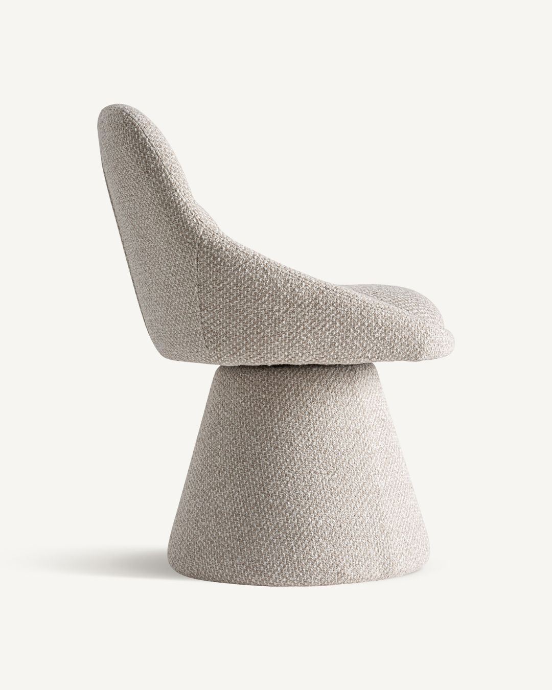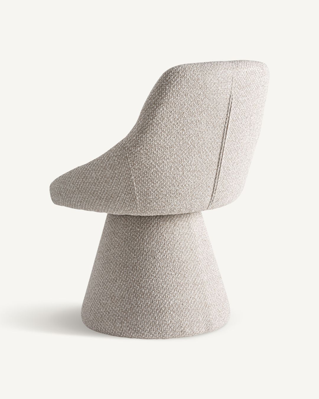 ESSEN valgomojo kėdė su besisukančiu mechanizmu – tai elegantiškas ir praktiškas pasirinkimas, puikiai tinkantis tiems, kurie vertina modernų stilių bei komfortą. Kėdės sėdimoji dalis ir atlošas aptraukti minkštu, šviesios (beige) spalvos audiniu, kuris suteikia jaukumo bei šilumos.