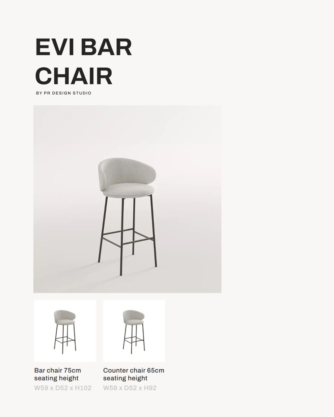 EVI BAR CHAIR – tai subtilaus dizaino baro ir pusbario kėždių kolekcija, kuri suteiks jūsų valgomojo erdvei lengvumo, šiuolaikiškumo ir išbaigtumo pojūtį. Šios kėdės išskirtinumas slypi grakščiai išlenktame atloše, kuris atrodo me tik estetiškai, bet ir yra labai patogus.