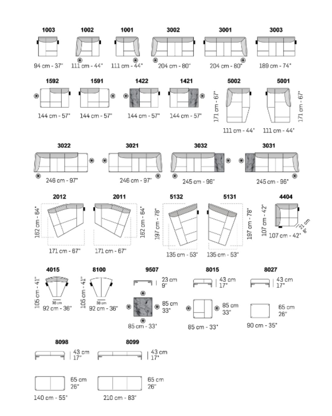 • Kiti dydžiai: ši sofa yra modulinė – galima užsisakyti ir kitus dydžius. Dėl individualių sprendimų kviečiame susisiekti su mūsų salonu.
