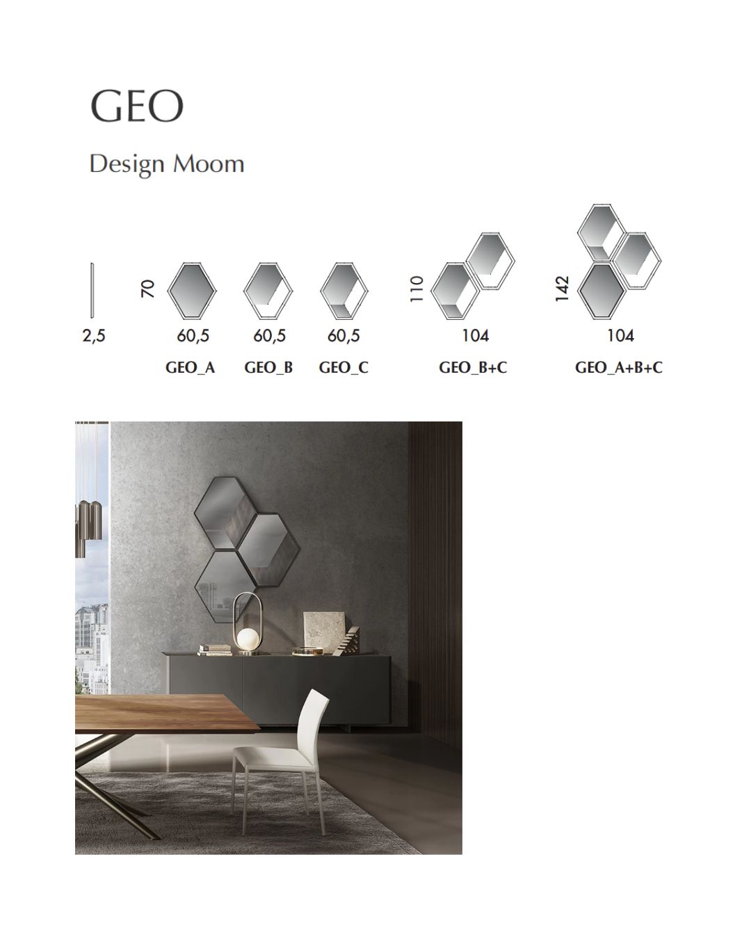 GEO veidrodis – tai išskirtinio dizaino sieninis veidrodis, sukurtas Italijoje, pasižymintis skulptūriškomis formomis ir aukšta meistrystės kokybe. Šiuolaikinė estetika dera su rafinuotu stiklo apdirbimu, todėl veidrodis tampa ne tik funkcionaliu, bet ir dekoratyviu interjero akcentu.