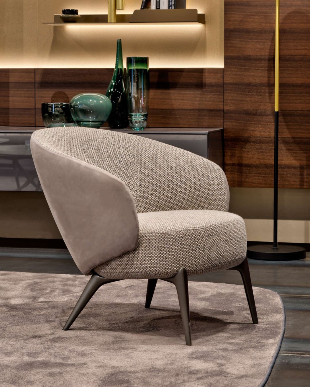 HELEN – tai fotelis, kuriame susilieja elegantiškos formos ir išgrynintas komfortas. Lenktas nugaros atlošas patogiai apgaubia kūną ir pabrėžia grakščias fotelio linijas.