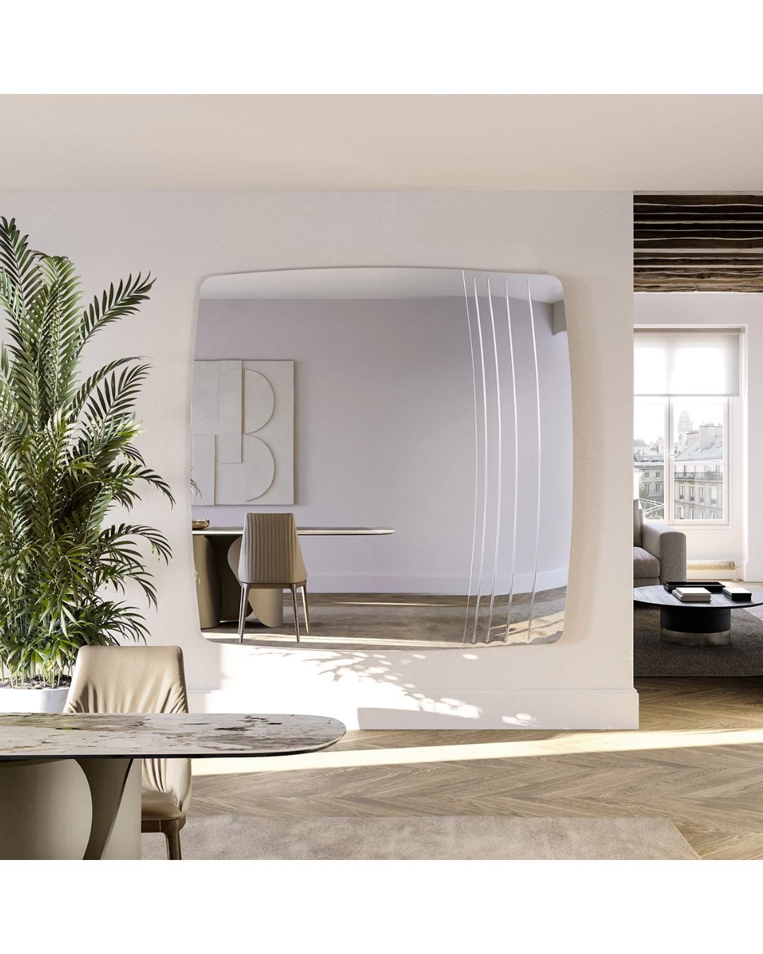 KIRTY veidrodis – tai išskirtinio dizaino sieninis veidrodis, sukurtas Italijoje, pasižymintis skulptūriškomis formomis ir aukšta meistrystės kokybe. Šiuolaikinė estetika dera su rafinuotu stiklo apdirbimu, todėl veidrodis tampa ne tik funkcionaliu, bet ir dekoratyviu interjero akcentu.