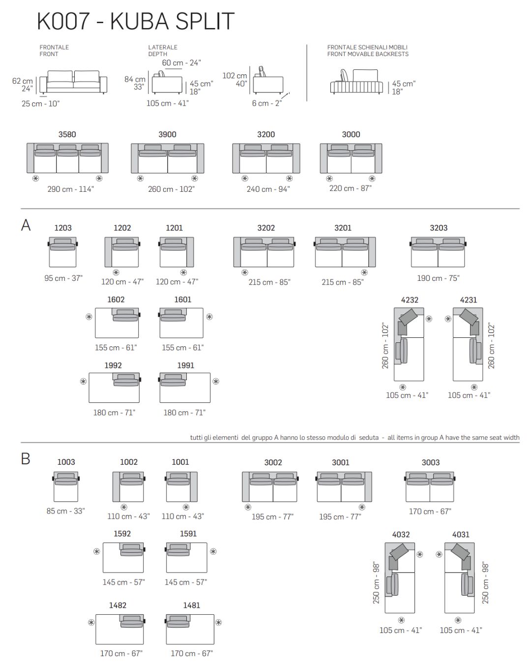 KUBA SPLIT sofa – tai aukštos kokybės itališko dizaino sofa, sukurta Nicoline gamintojo, derinant eleganciją, komfortą ir ilgaamžiškumą. Sofa gaminama Italijoje ir gali būti individualiai pritaikoma pagal jūsų poreikius. Platus audinių ir natūralių odų pasirinkimas, įvairūs dydžiai bei komplektacijos – leidžia lengvai priderinti sofą prie bet kokio interjero.