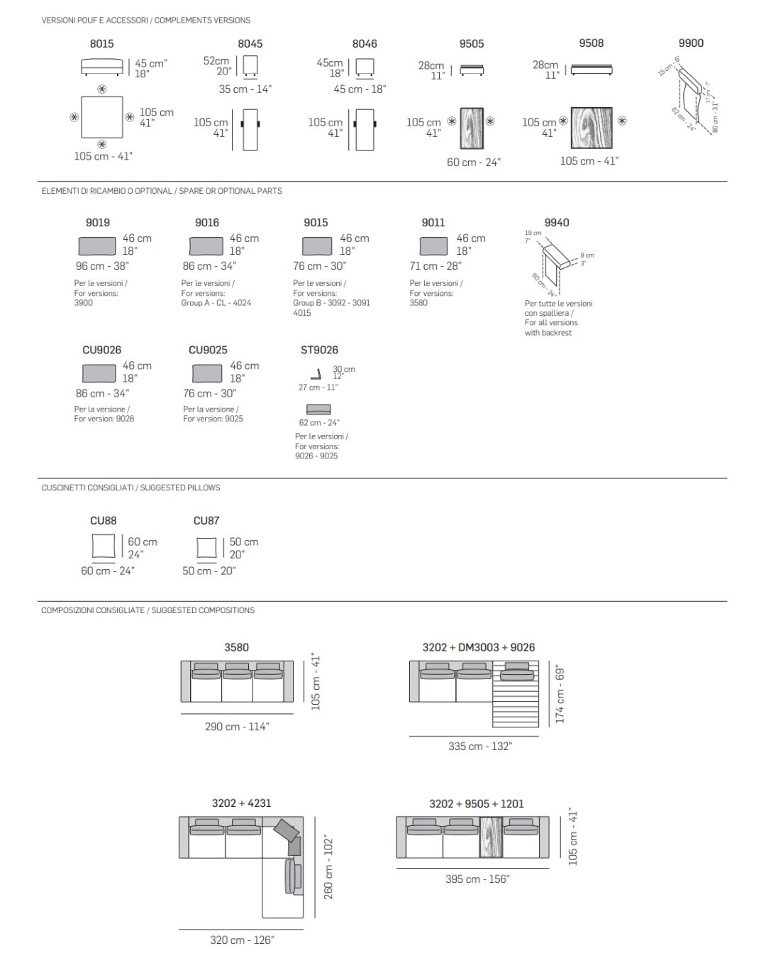 - Kiti dydžiai: ši sofa yra modulinė – galima užsisakyti ir kitus dydžius.