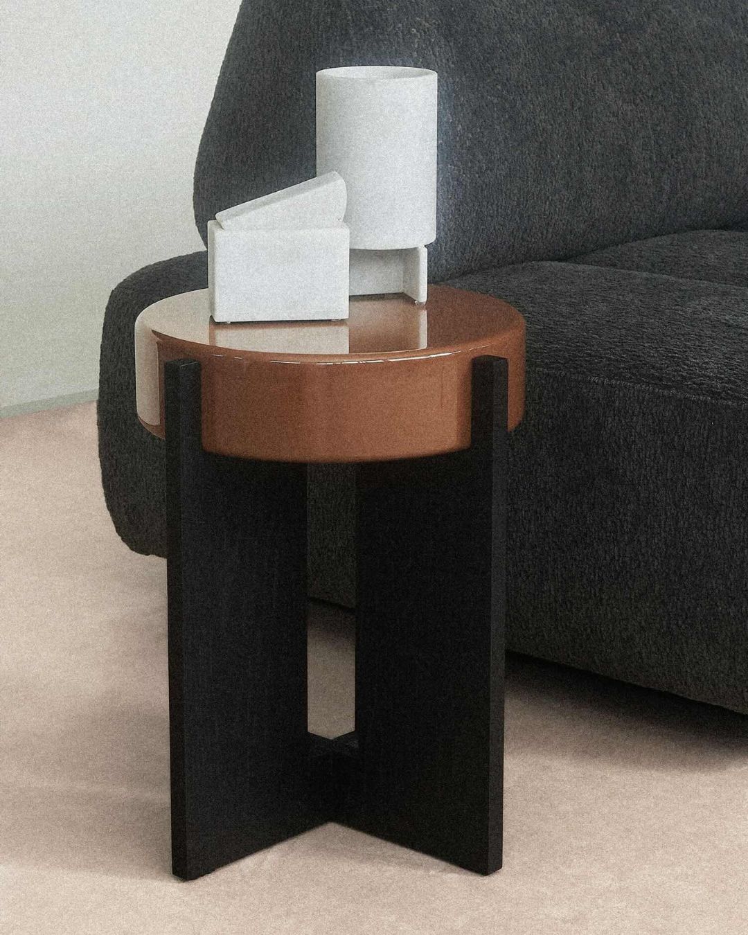 MIRA kavos staliukai – žvelgiant iš viršaus, jie primena snaiperio taikiklį – iš čia ir kilęs pavadinimas MIRA („taikytis“ portugalų k.). Tai naujas žvilgsnis į jaukią, nostalgišką 7-ojo dešimtmečio estetiką, nukeliantis tiesiai į Jameso Bondo filmų atmosferą. Storas, blizgus lakuotas stalviršis elegantiškai įstatytas į ploną, rūkyto medžio rėmą, sukuriant ryškų kontrastą ir leidžiant žaisti spalvomis, keisti nuotaiką bei vizualinį efektą.