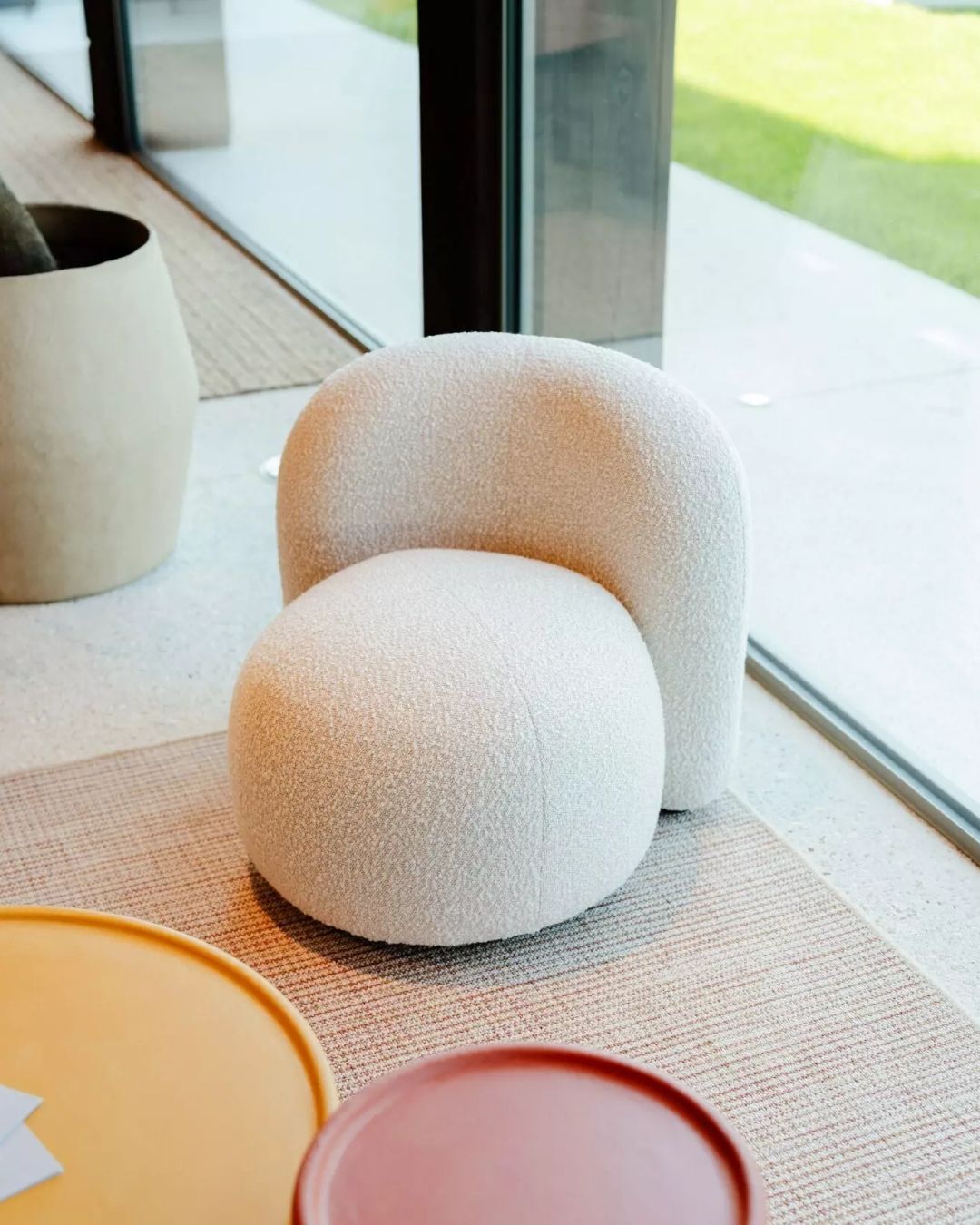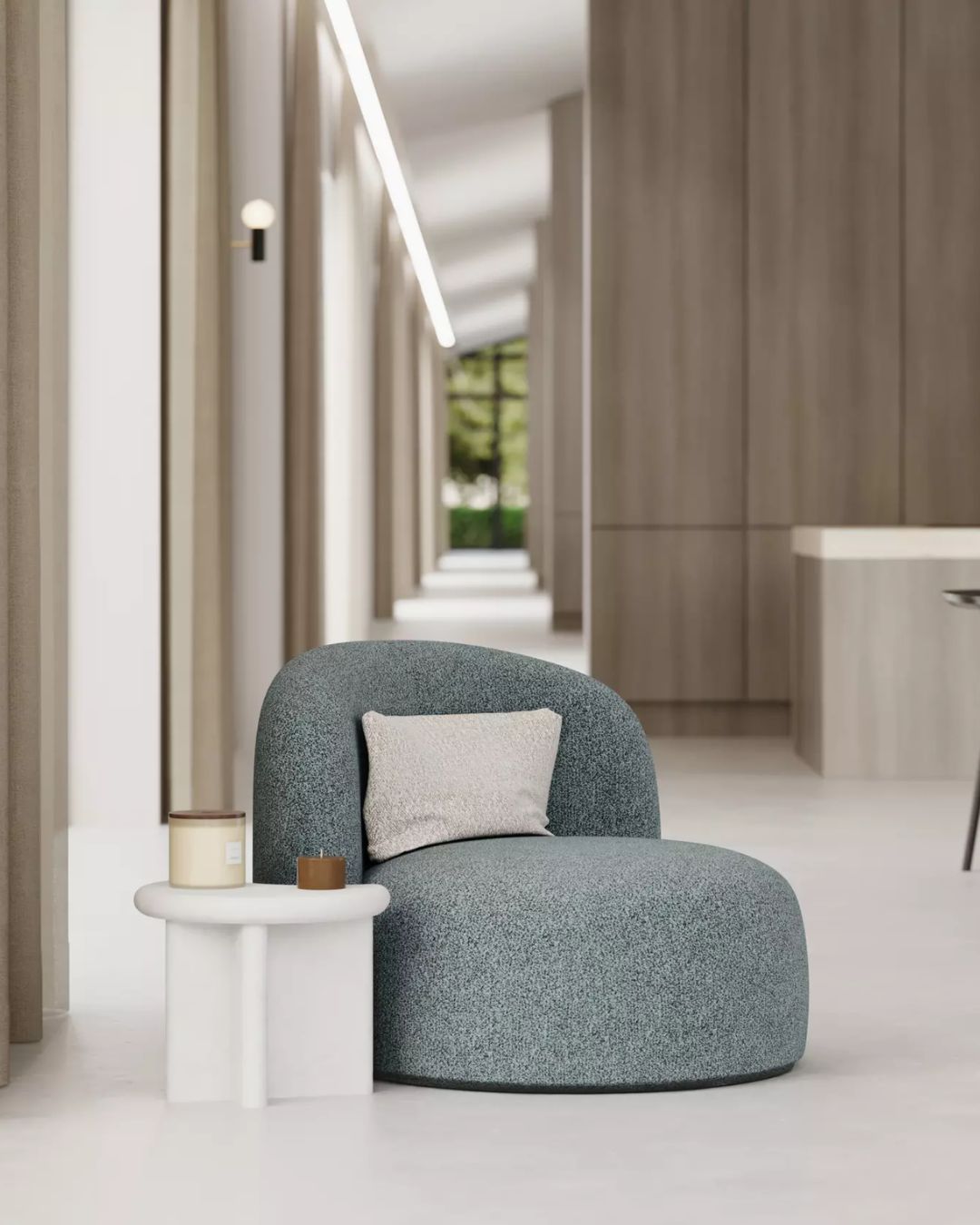 MOLLIS ARMCHAIR – modernaus dizaino fotelis, kurio lenkta forma sukuria apgaubiantį sėdėjimo pojūtį, kviečiantį atsipalaiduoti ir pasimėgauti poilsiu. Fotelis turi 2 dydžio versijas – mažesnis ir didesnis.