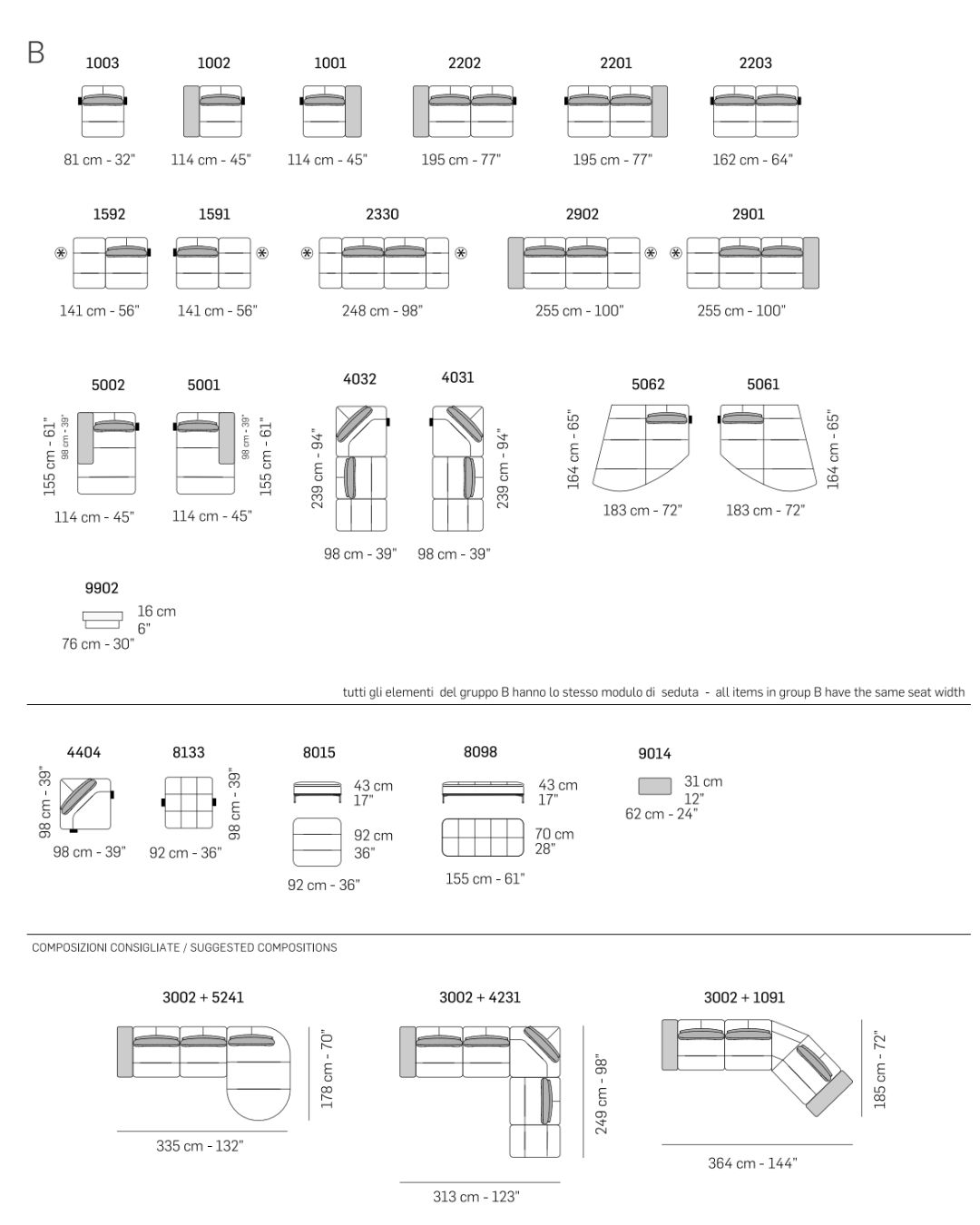 • Kiti dydžiai: ši sofa yra modulinė – galima užsisakyti ir kitus dydžius