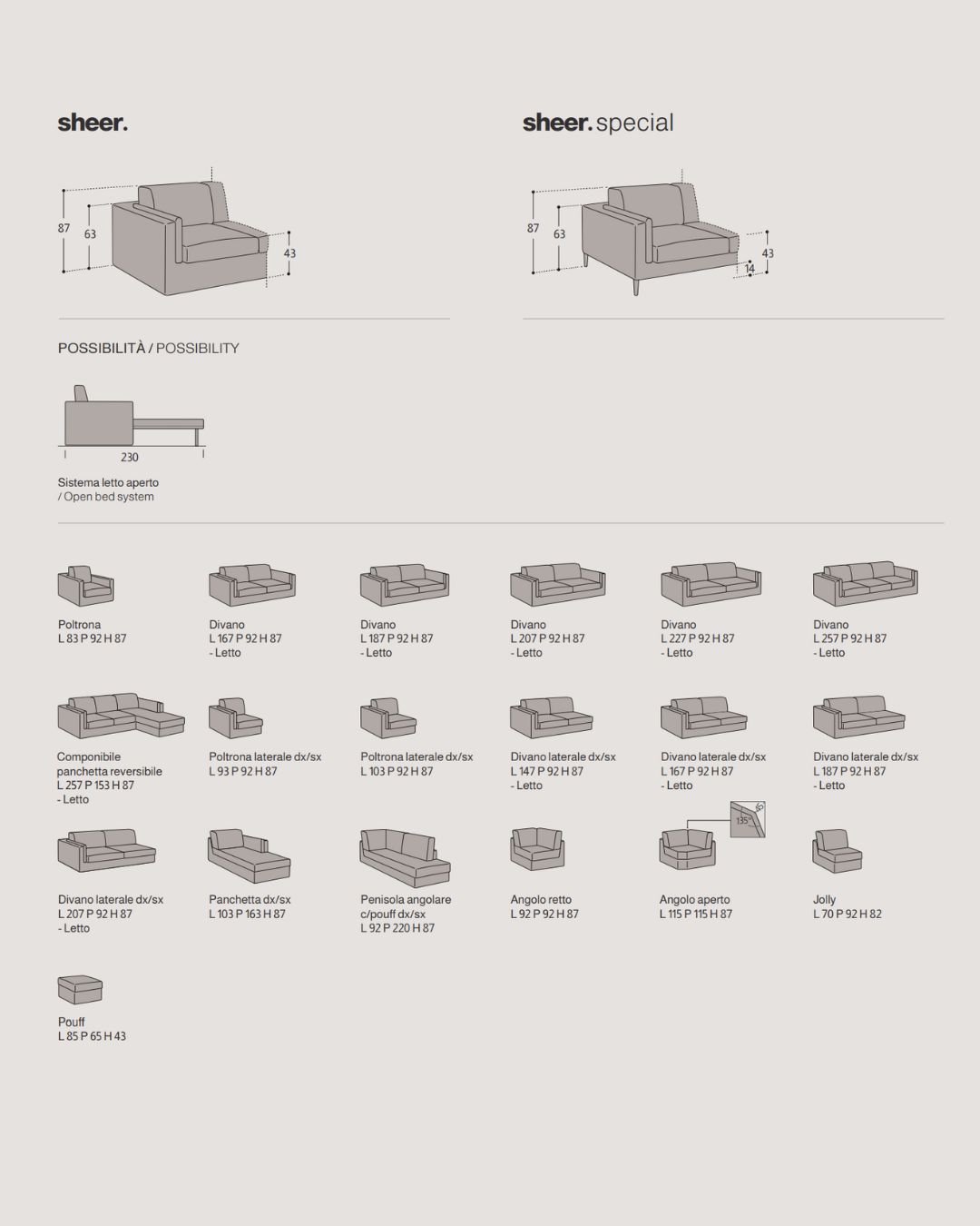 SHEER / SHEER SPECIAL – elegantišo dizaino svetainės sofa, kuri kviečia atsipalaiduoti. Nugaros pagalvės, užpildytos poliesterio pluoštu, suteikia minkštumo bei ergonomišką atramą. Platus audinių pasirinkimas ir lanksčios komponavimo galimybės suteikia laisvę kurti sprendimus, išskirtinai jūsų namams.