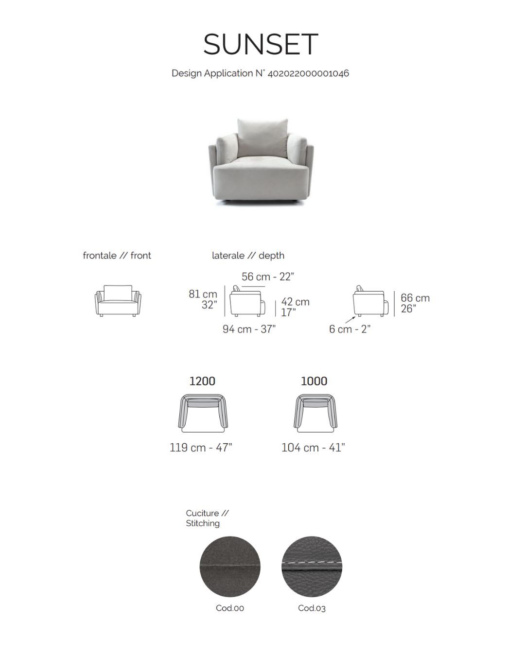 SUNSET fotelis pasižymi savo apgaubiančiomis linijomis ir harmoningomis proporcijomis. Šis fotelis sukurtas patogiam poilsiui bei jaukiems pokalbiams, užtikrinant visišką ramybės ir komforto pojūtį. Kruopščiai apgalvotos detalės bei platus audinių pasirinkimas suteikia foteliui lengvą, maloniai neįpareigojantį charakterį, puikiai tinkantį šiuolaikiškam interjerui.