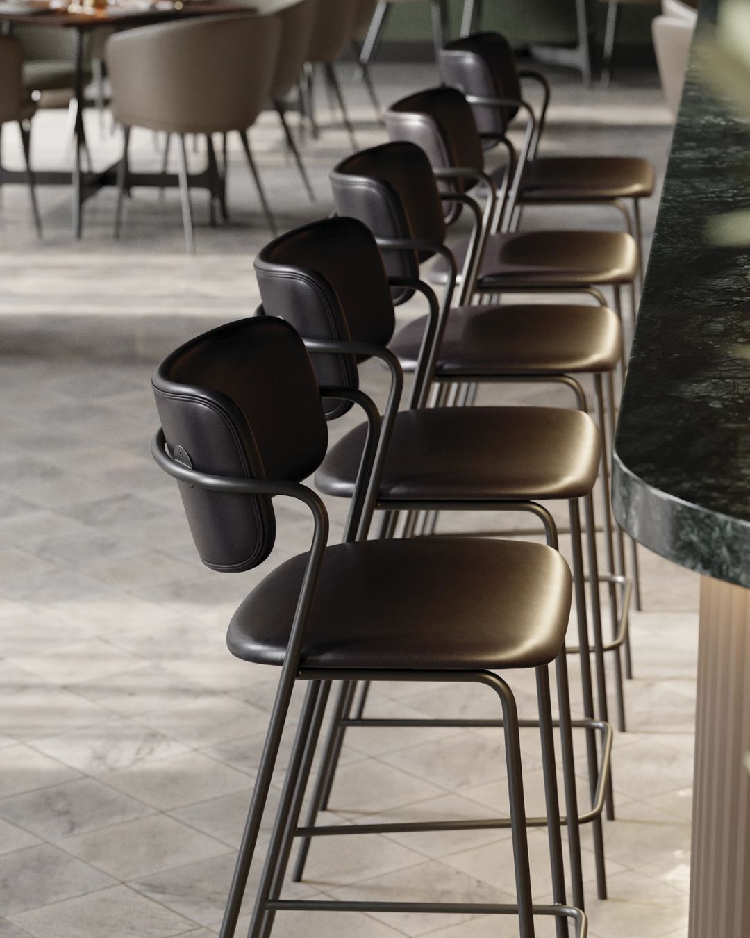 ZED – modernaus dizaino pusbario kėdė griežtomis linijomis, puikiai tinkanti virtuvės salai. Plonos metalinės kojelės suteikia lengvumo įspūdį, o paminkštinta sėdimoji dalis ir atlošas užtikrina išskirtinį komfortą.